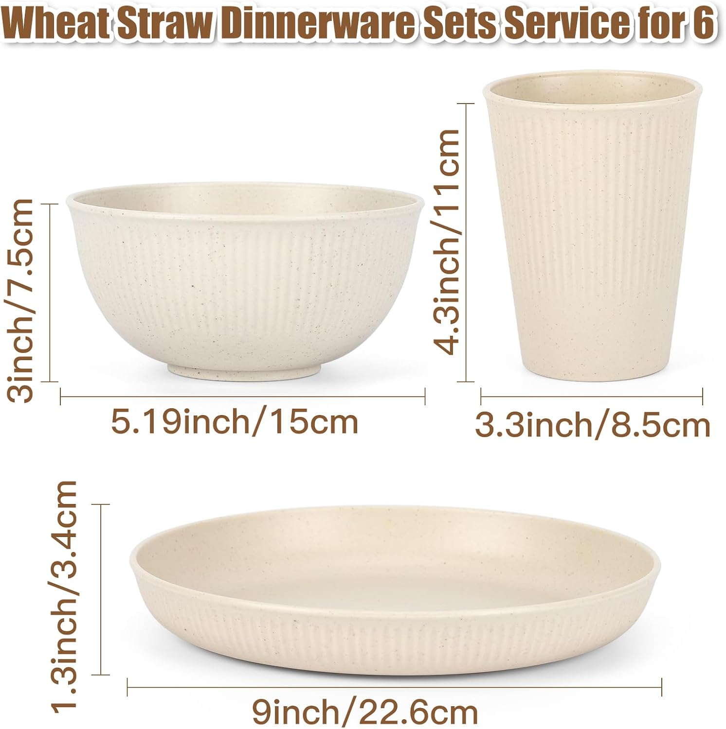 - 100% BPA Free, Non-toxic: This 18pcs dinnerware sets service for 6 are made from natural wheat straw fibers. Food grade 100%BPA-free, non-toxic. More safe, sustainable and unbreakable, it's perfect for families